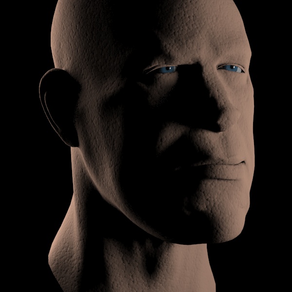 上記のイメージはでこぼこですが、バンプが非常に粗いため、石のように見えます。ソフト ライティングにもかかわらず、バンプ間のシャドウの暗部は非常に濃く、実際のスキンでは光線はスキンの下で周囲とのわずかなにじみが発生します。