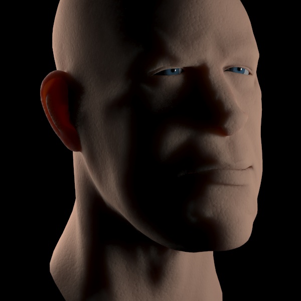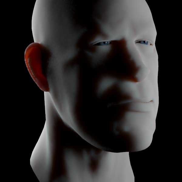 ここで注目することは、上記のカラーは、拡散レンダリングと全体的なカラー トーンが同じだということです。これはテクスチャリングに非常に適しています。ここで覚えておくことは、スキャッタリングとは光線をぼかすということです。そのため、非常に詳細な情報が多数あるスキャッタリング パラメータにテクスチャをマッピングすることは賢明ではありません。一般的なエラーは、隙間の塗り潰しシャドウが含まれているスキャッタリング コンポーネントにテクスチャをマッピングすることです。こうすると、光線はその隙間にスキャッタリングすることができなくなるため、これは誤りです。隙間へのスキャッタリングこそが、サブサーフェス スキャッタリングを実行する目的です。