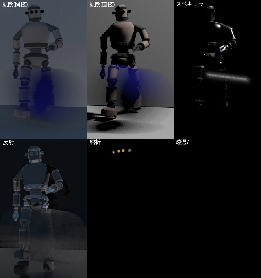 一般的には、一番上にあるオブジェクトに関するシェーダがフレームバッファに値を出力します。不透明なオブジェクトでは、これは拡散パスと反射パスのすべてで鮮明に表示されます。ただし、光を通すオブジェクトの場合、レンダラはバックグラウンドにあるオブジェクトに対してシェーダを実行します。したがって、制作上で重要となるのは、バックグラウンドのオブジェクトがどのフレームバッファのパスに関与するのか?という疑問です。