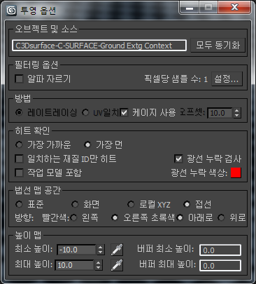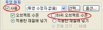 투영 매핑 그룹에서 옵션을 클릭하여 투영 옵션 대화상자를 표시합니다.