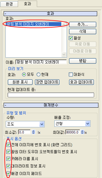 3ds Max에 환경 및 효과 대화상자