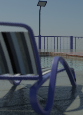 길이를 확인했으므로 첫 번째 렌더링의 초점 평면으로 전경의 의자를 사용합니다.