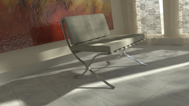 Quicksilver 렌더러에서는 시스템의 CPU를 사용하여 렌더링할 장면 데이터를 준비합니다. 또한 그래픽 카드(그래픽 처리 장치 또는 GPU)를 사용하여 실제 렌더링을 수행합니다. 처음으로 장면을 렌더링하면 CPU에서 렌더링에 사용된 셰이더를 컴파일해야 합니다. 이 작업은 시간이 오래 걸릴 수 있지만 셰이더당 한 번만 수행하면 되므로 후속 렌더링 시간은 첫 번째 렌더링보다 더 빨라질 수 있습니다. 예를 들어 한 시스템에서 이 장면을 처음 렌더링하는 데 30초 넘게 소요되지만 후속 렌더링은 단 5초 이내에 완료됩니다.