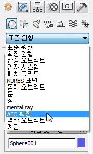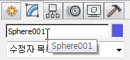 - 수정 패널의 오브젝트 이름 필드에서 Sphere001이라는 이름을 두 번 클릭하여 강조 표시합니다.