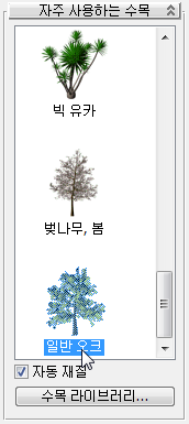 - 자주 사용하는 수목 롤아웃에서 나무의 종으로 일반 오크를 선택합니다.