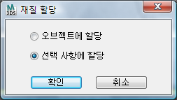 3ds Max에 재질 할당 대화상자가 열립니다. 대화상자에서 선택 사항에 할당이 선택되어 있는지 확인한 다음 확인을 클릭합니다.