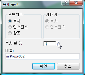오브젝트 그룹에서 복사가 선택되어 있는지 확인한 다음 복사 횟수를 3으로 설정합니다. 확인을 클릭합니다.