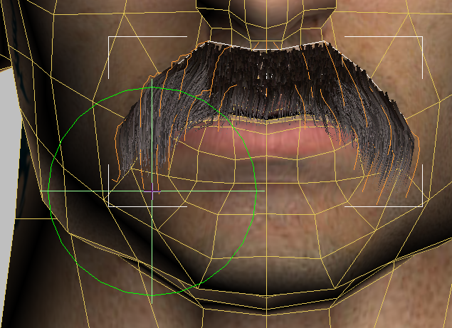 콧수염 왼쪽(뷰포트 오른쪽)을 브러시해 머리에서 바깥쪽으로 뻗어 나가도록 만듭니다.
