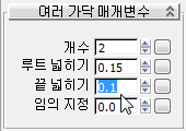 - 꼬임 매개변수 롤아웃에서 꼬임 루트를 0.5로, 꼬임 끝을 3.0으로 설정합니다.