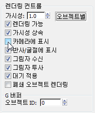 렌더링 컨트롤 그룹에서 카메라에 표시를 클릭하여 끄고 확인을 클릭합니다.