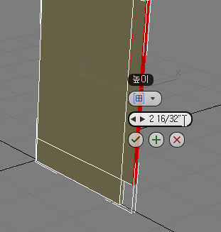 수정 패널로 이동한 다음 매개변수 롤아웃에서 길이를 21.0으로, 폭을 0.75로, 높이를 34.5로 각각 설정합니다. 값을 입력하는 즉시 장면 파일에 지정된 단위 설정에 따라 값은 인치와 1/32인치의 소수로 변환됩니다.