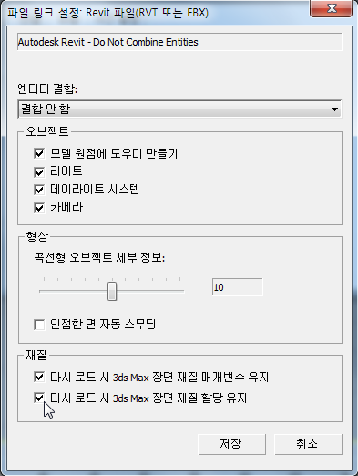 이러한 옵션을 사용하면 장면을 링크하거나 링크된 장면을 다시 로드할 때 3ds Max 재질이 유지됩니다.
