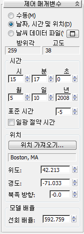 모션 패널로 이동합니다. 제어 매개변수 롤아웃에서 설정을 확인합니다. 위치가 Boston 제대로 설정되고, 시간 그룹
