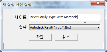 - 새 설정 사전 설정 대화상자가 나타나면 새 사전 설정의 이름을 Revit Family Type With Materials로 지정한 다음 확인을 클릭합니다.