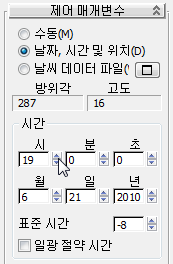 - 일광 오브젝트를 계속 선택한 상태로 제어 매개변수 롤아웃