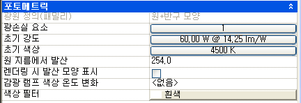 Revit에서 라이트 오브젝트 특성 확인: