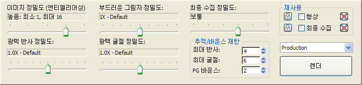 이미지는 향상되었지만 렌더링하는 데 상당히 더 많은 시간이 필요합니다.