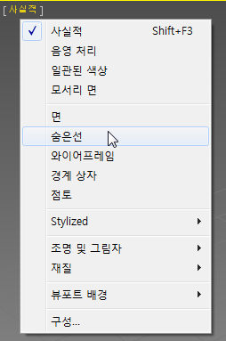 숨은선을 표시하면 장면에 더 쉽게 프레임을 지정할 수 있습니다. 음영 처리 옵션에서는 조명 수준을 사용하지 않으므로 도움이 됩니다.