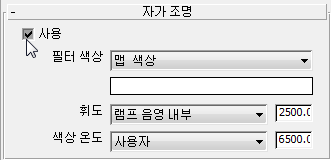 라이트가 설정되어 있는 것처럼 보이지만 조명을 제공하지 않습니다. 이는 장면의 다른 모든 오브젝트처럼 라이트 오브젝트도 꺼져 있지만 재질은 글로우로 설정되어 있기 때문입니다. 이러한 특징은 나중에 인공 라이트를 켠 상태에서 장면을 렌더링할 때 필요합니다.