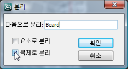 8. 분리 대화상자에서 복제로 분리를 켭니다. 분리된 면의 이름을 턱수염으로 지정하고 확인을 클릭합니다.