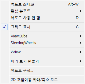 이 하위 메뉴에서는 ViewCube를 표시하고 사용하기 위한 옵션을 제공합니다.