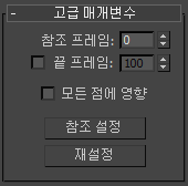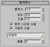 고급 스프링 사용이 설정될 때만 이 롤아웃에서 네 개의 숫자 늘이기 및 Sway 설정을 사용할 수 있습니다.