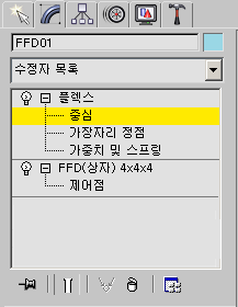 하위 오브젝트의 모든 수준에서 가중치를 페인트하고 스프링을 추가하고 제거할 수 있지만(플렉스 수정자 오브젝트 수준도 해당) 가중치 및 스프링이 선택되어 있으면 선택된 정점에만 영향을 미칩니다.