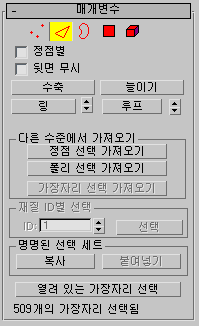 주: 뒷면 무시 확인란의 상태는 가장자리 하위 오브젝트 선택 수준에서 가장자리 선택에도 영향을 미칩니다.