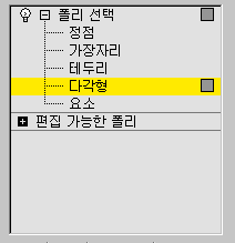 주: 폴리 선택 수정자를 폴리메시 타입이 아닌 오브젝트에 적용하면 오브젝트가 폴리메시 오브젝트로 변환됩니다. 변환을 더 제어하려면