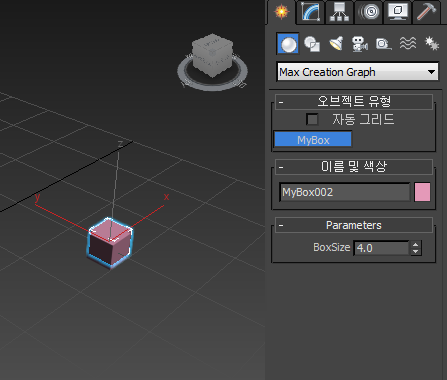 그러면 Max Creation Graph 범주의 오브젝트 유형 롤아웃에 있는 MyBox 도구가 바뀝니다.
