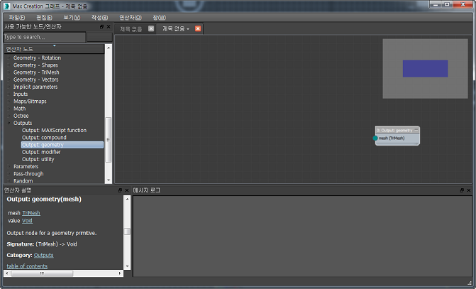 이제 CreateBox 노드에서 생성된 원시 데이터를 3ds Max에서 사용할 수 있는 형상 노드로 변환해야 합니다.