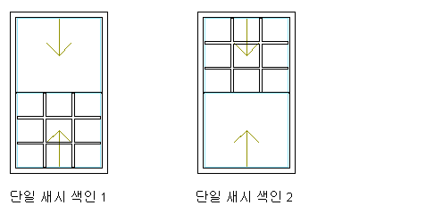 | 각 새시 구성요소에 문살 부착 | 창 영역에서 기타를 선택합니다. 단일을 선택하고 창 새시의 색인 수를 지정합니다. 새시는 하단 왼쪽 구석에서 시작하여 시계 반대 방향으로 색인화됩니다. |