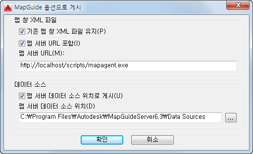 | 데이터를 맵 서버 데이터 위치로 게시 | 맵 서버 데이터 소스 위치로 게시를 선택한 후 위치를 찾습니다. |