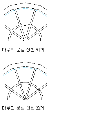 | 문살 교차부분을 구석으로 변환 | 문살에서 접합부 마무리를 선택합니다. |
