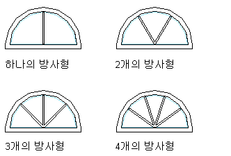 Starburst 패턴은 맨 위 창 새시에만 추가할 수 있습니다. Starburst 패턴은 원형, 1/2 원형 또는 1/4 원형 상단의 창 쉐이프에 적용할 수 있습니다.