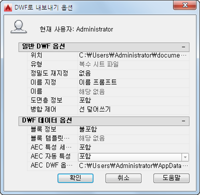 데이터 옵션은 DWF로 게시할 때만 사용할 수 있습니다.