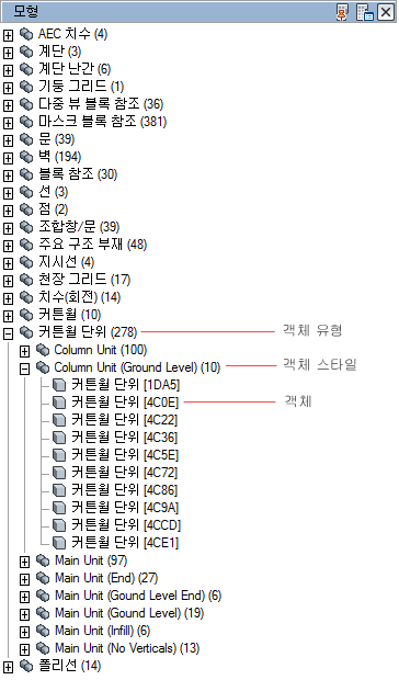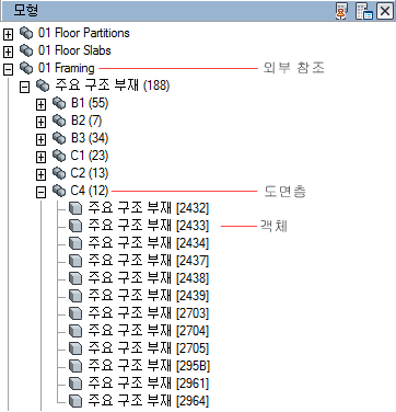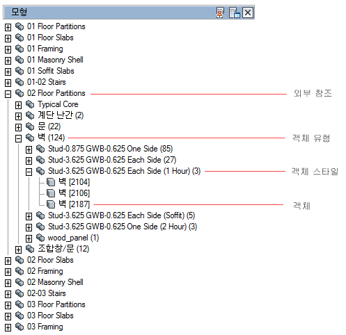- 특성 세트 데이터를 외부 참조별, 객체 유형별 및 객체 스타일별의 순서로 그룹화
