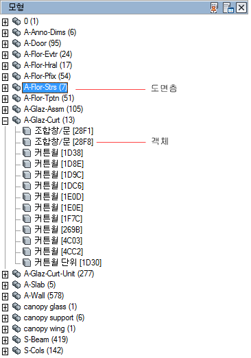 - 특성 세트 데이터를 객체 도면층별로 그룹화