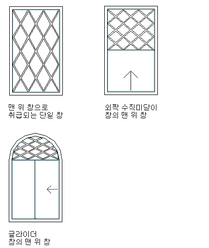 | 상위 새시에만 문살 부착 | 창에서 맨 위를 선택합니다. 맨 위도 단일 새시에 적용됩니다. |