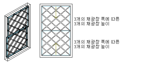 개방 창을 제외한 모든 창 쉐이프 및 창 유형에 다이아몬드 패턴을 적용할 수 있습니다.