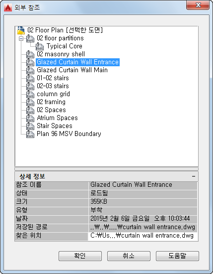 외부 참조 대화상자에 구성에 있는 외부 참조의 리스트가 표시됩니다.