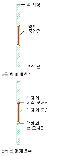 | 벽의 끝을 참조점으로 사용 | (X)를 따라 위치의 시작에서 벽의 끝을 선택합니다. |