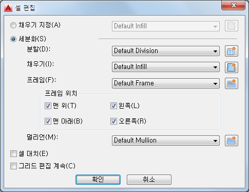 셀이 재분할된 후 작성된 그리드에 멀리언 정의 선택 | 멀리언 정의를 선택합니다. |