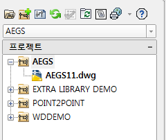 이제 AEGS11.dwg는 프로젝트 관리자의 프로젝트 도면 파일 리스트 맨 아래에 있습니다.