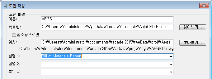각 도면에 대한 설명을 프로젝트 파일에 추가할 수 있습니다. 제목 블록 속성에 있는 도면 설명을 다시 사용하여 AutoCAD Electrical 보고서에 연결할 수 있습니다.