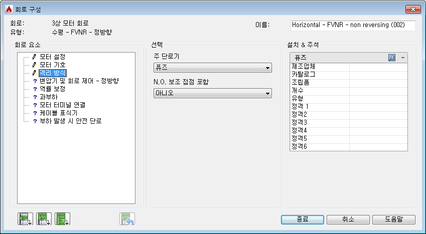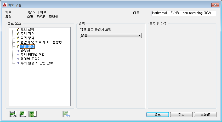 선택 섹션에서 역률 보정 콘덴서 포함으로 없음을 선택합니다.