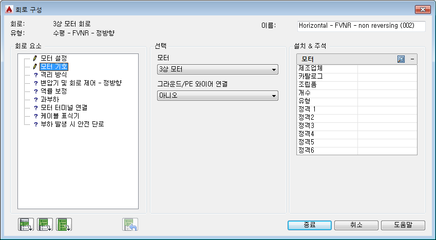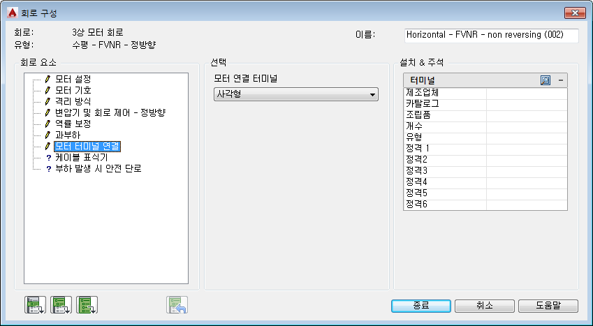 선택 섹션에서 모터 연결 터미널로 원형을 선택합니다.