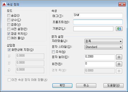 - 명령 프롬프트에 ATTDEF를 입력하여 속성 정의 객체를 삽입합니다.