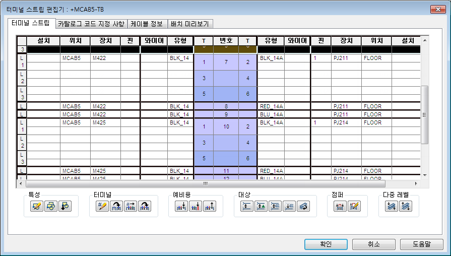 터미널 스트립 편집기를 사용하여 터미널을 관리하고, 터미널 특성을 편집하고, 터미널을 연관시키고, 그래픽 터미널 스트립을 삽입합니다.