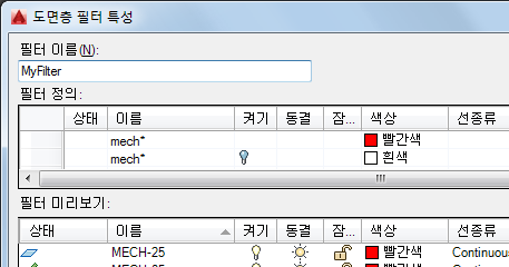 도면층 특성을 기준으로 도면층 특성 필터 작성
